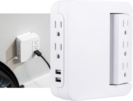 Pro Side-Access Swivel Sur Protector, 5-Outlet Extender with 2 USB Ports, Wall Tap Adapter, Charging Station, 3-Prong, 560 Joules, 2.4 AMP/12 Watt, UL Listed, White, 39429